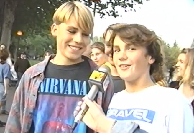 No, it was sort of like “oh I didn’t realize we were talking about real stuff.” I thought they were joking around. But, yeah. Seeing that video is so crazy. Because I remember that show so well. I remember the experience of being 14 and going to see Nirvana with my friends. In my mind I’ve been telling the story of it over and over for the last 22 years. Yeah, 22 years. And so seeing the footage all of the sudden of this vivid memory is so trippy because it looks just like how I remember it. I noticed that I act the same in the video and my friend acts the same in the video, the one smiling at the camera.