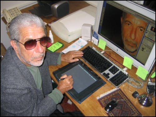 Phil: (Laughs) Well I’ll tell you. I have made garageband versions of those songs as a way of teaching my bandmates, in preparation for tours, by simplifying my studio recordings into these garageband Midi versions. I could then send them to people who are going to come on tour with me and say, “here’s your piano part” or “here’s your bass part”. Also, because I was building it up from scratch again anyways — just really quick on my home computer. The singing was just for a guide so they knew where it is in the song. I experimented with putting funny effects in my voice, and the more I listened to those, the more it grew on me. I really liked them, and after accumulating a bunch of those demoes I decided to release them. As for the cover, it was inspired by this funny picture I found on the internet of Leonard Cohen. ‘Cause for my iTunes library I like to put funny pictures for all the album art, so I spend a lot of time doing google searches of hilarious photos of musicians. It’s stupid, it’s a waste of time, but it’s what I do. And I found this picture of Leonard Cohen sitting in front of an early Macintosh computer with a track pad and a stylus. He’s like photoshopping something, if you look on the computer screen you can see it’s a picture of his own face. He’s photoshopping his own face and it’s a crappy flash photograph taken from behind him while he’s turning around looking at the camera. It’s most non-poetic, unflattering portrait of this amazing artist. I really liked how humanizing it is and how modern, demystifying because you think of Leonard Cohen as like a poet writing his zen notebook. It kind of goes with the idea of the album.