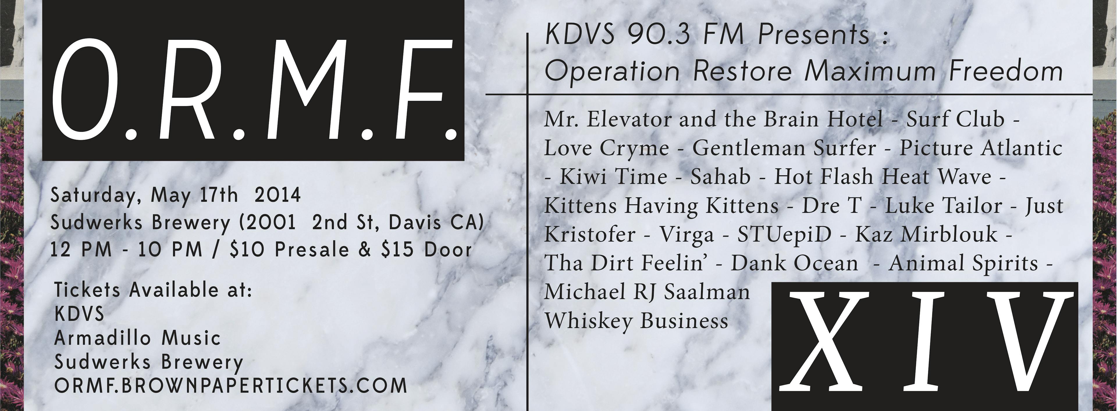 Please join KDVS in our 14th annual Operation Restore Maximum Freedom Music and Art Festival. Every year KDVS likes bringing the Sacramento Valley community a vision of the eclectic, freeform music we listen to at the station. This year in collaboration with Sudwerks Brewery and Third Space Art Collective, KDVS is bring you two stages of music of many genres and art to enjoy!