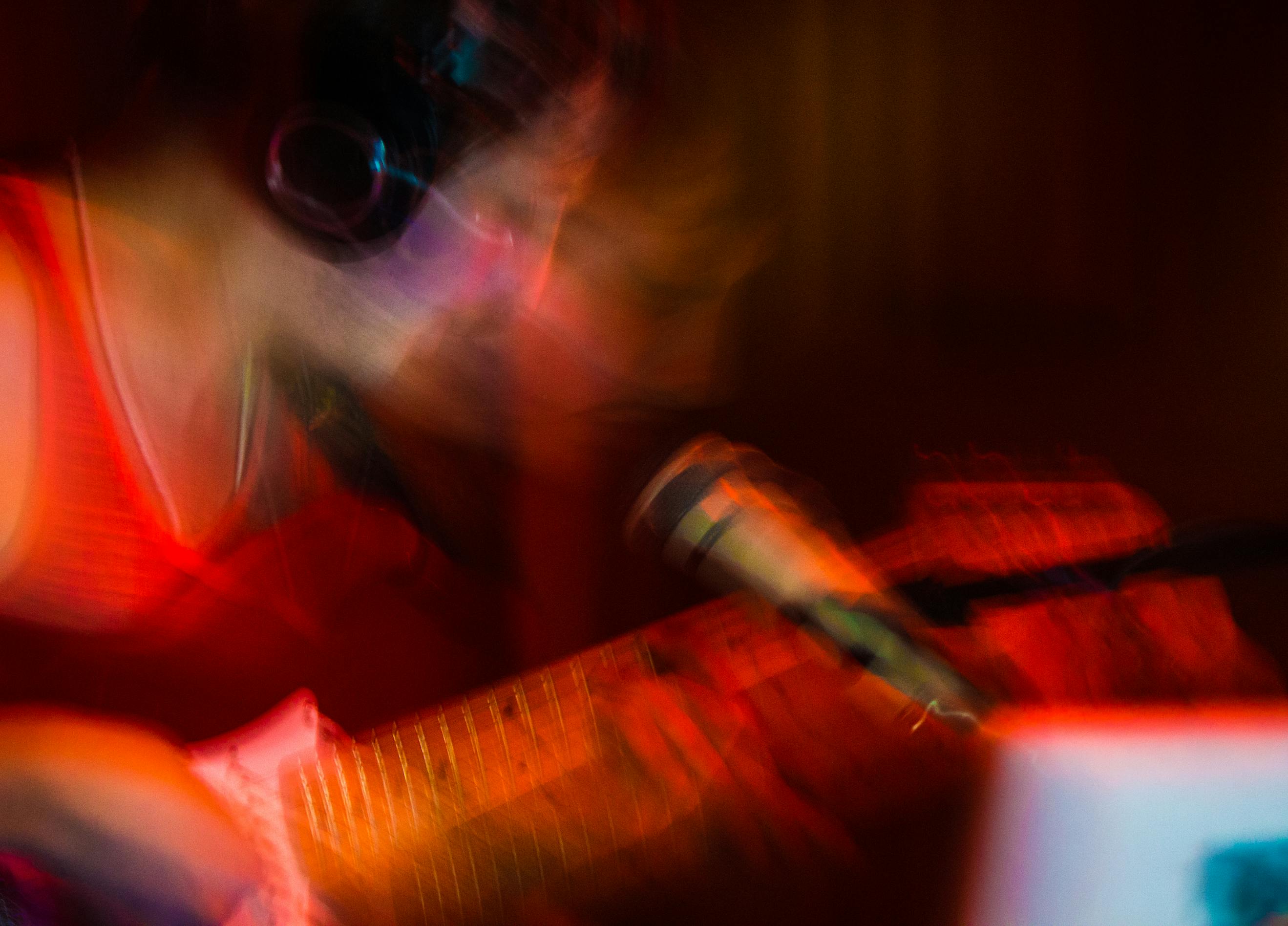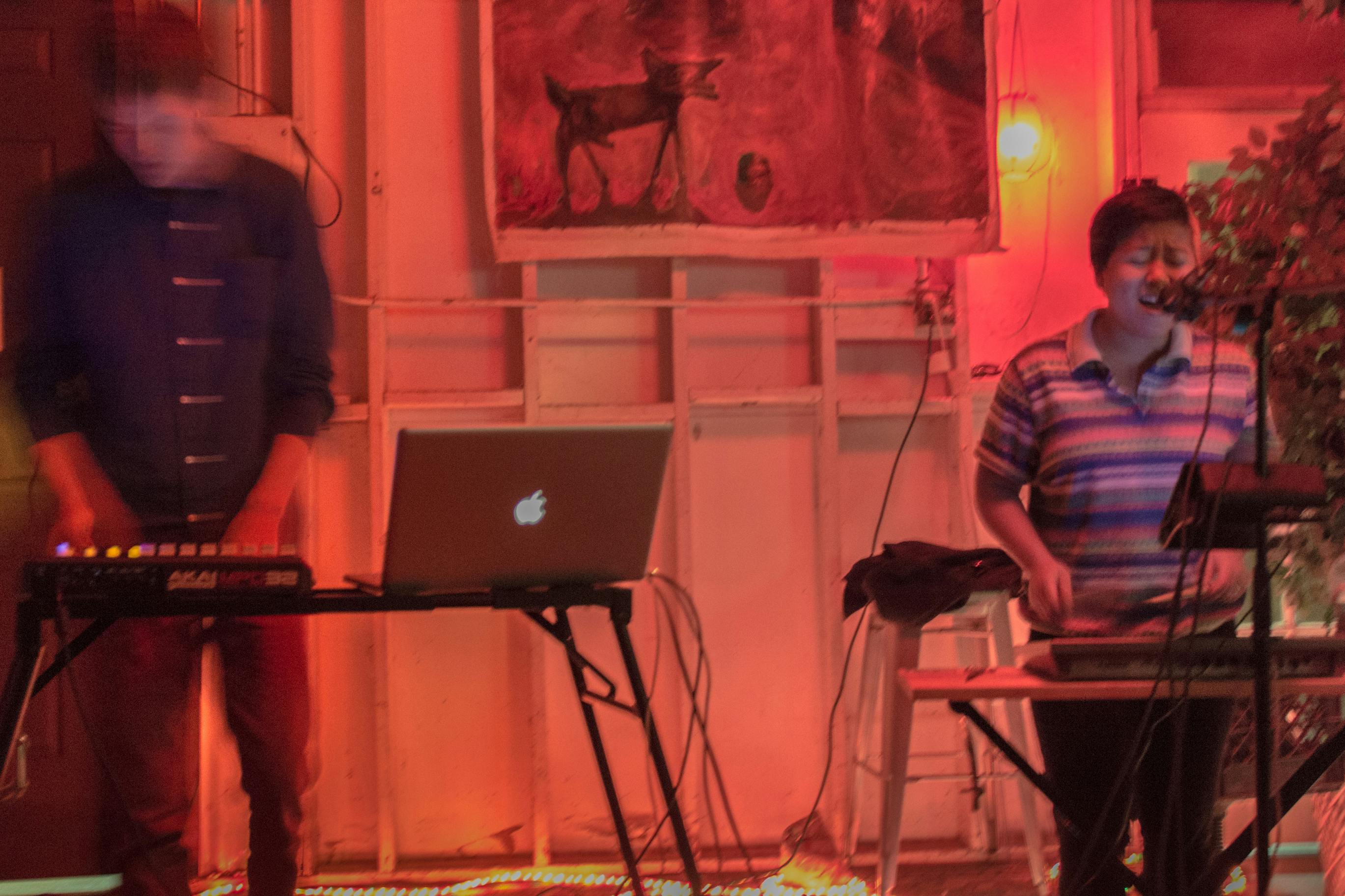 Third Space Art Collective was the venue, a cozy, unassuming warehouse shortly off campus. Inside a traffic cone chandelier hung from the rafters splashing the stage with an orange hue, and Christmas lights were vibrantly tangled along the stage floor. How’s that sound? Daniel Trudeau of Sacramento-based pop project Pregnant crooned sweetly on the left side. In the center was a monitor displaying Katamari Forever, smeared with rainbows and free to play for any worthy or willing soul in the front row. And with all the colors and charms from the screen, proportionate pop melodies came from the amps: twinkling synthetics, clicking drums, and a definite pop groove. The sound was luminescent, glitchy, and progressed with a certain tinkering effect, like an elaborate pop-fueled Rube Goldberg machine. The grooves themselves fell right into place, maybe reminiscent of classic [adult swim] bumpers with a new neon shade. And it was at this point that the first set ended and the warehouse opened its garage door maw for us to haply enjoy the cold air outside.